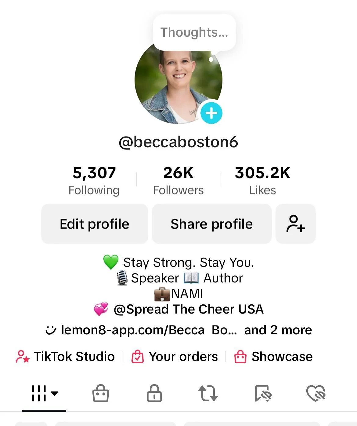 She hosts the Stay Strong. Stay You. Podcast, has over 26k TikTok followers (@beccaboston6), and has been featured in LA Weekly, Bold Journey, and by NAMI (National Alliance on Mental Illness).
